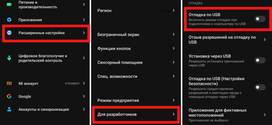 Затем переходим назад в «Настройки» и выбираем раздел «Дополнительные настройки». В этом разделе появится новый пункт «Разработчик» или «Режим разработчика». Открываем его и включаем опцию «Режим USB-отладки».