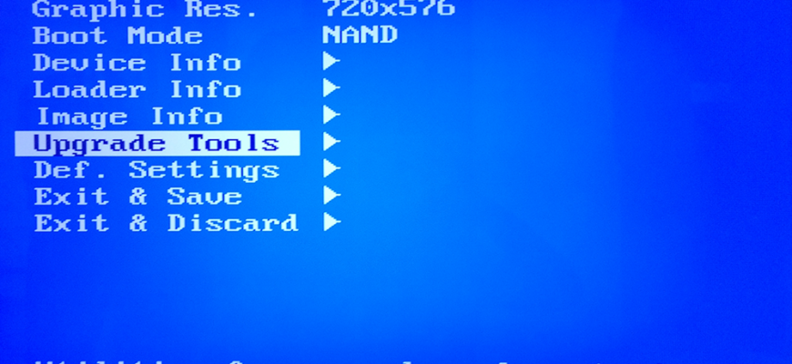 5. Перейдите в меню приставки, называемое BIOS. Обычно это делается путем нажатия кнопки включения и удерживания ее до тех пор, пока не появится надпись «wrong video-биоса» или «upgrade bootstrap_…».