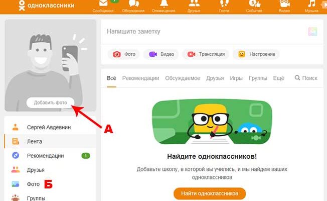 Одноклассники предлагают новостную ленту, в которой отображаются публикации ваших друзей. Чтобы начать процесс добавления фотографий к заметкам, нажмите на кнопку «Заметки».