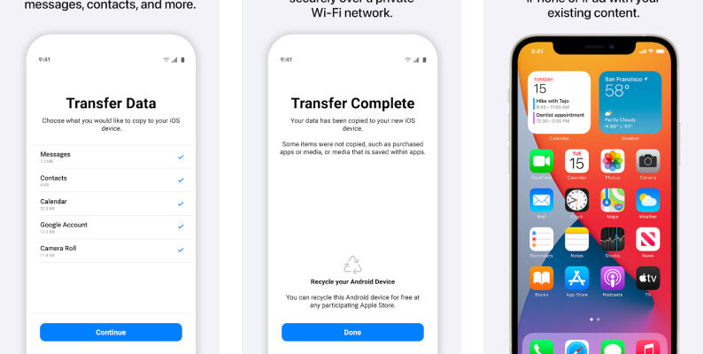 В то время как приложения не могут быть перенесены между операционными системами, вы можете найти множество приложений, которые доступны и для Android, и для iOS. Перейдите в App Store после завершения переноса данных для загрузки ваших любимых приложений.
