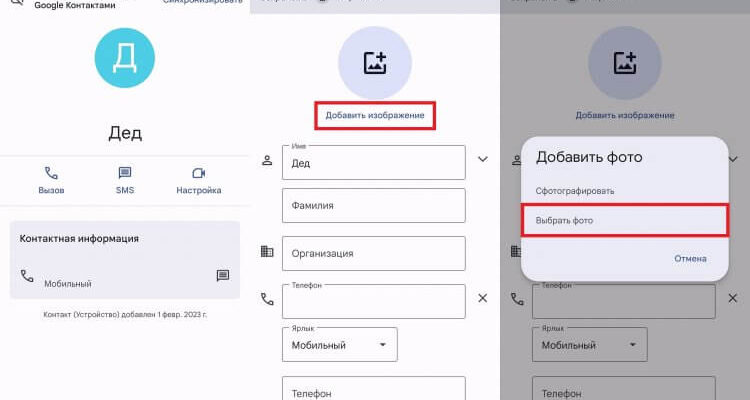 Этот способ также полезен, если вы хотите сделать фото с помощью камеры на телефоне и немедленно его использовать для добавления на контакт.