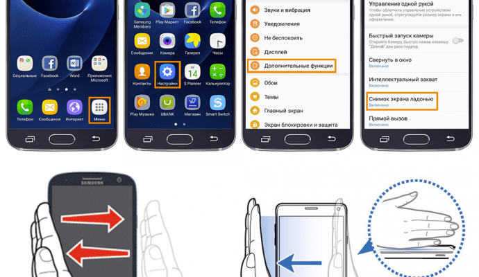 На многих моделях Samsung Galaxy есть функция снятия скриншота с помощью жеста ладонью. Для активации этой функции необходимо: