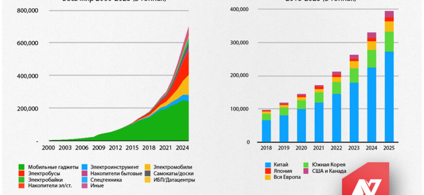 - Масштабы производства: Китай обладает огромными масштабами производства электроники, что создает большой поток отработанных Li-Ion батарей.