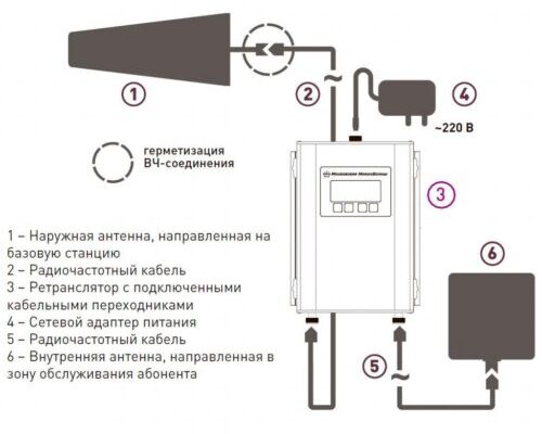 Существуют разные способы усиления сигнала сотового телефона. Один из них — использование репитера, который с помощью специальных комплектов оборудования позволяет усилить сигнал сотовой связи. Репитер обычно состоит из двух антенн — наружной и внутренней. Первая собирает сигнал с мобильной станции, а вторая распределяет его внутри здания.